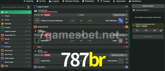 A aposta 787br oferece aos jogadores a experiência mais conveniente de apostas em eSports!